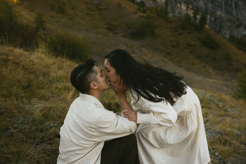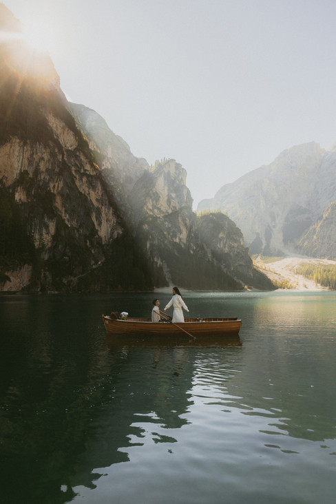 At the end of September, Genevieve and Kash traveled to the breathtaking Dolomites, a stunning mountain range nestled in the Alps of northern Italy. Upon their arrival, they were welcomed by the fresh autumn air and the vivid colors of fall leaves, providing an ideal setting for their adventure. We enjoyed a cinematic couple session together watched the sunrise over the rugged peaks and dancing around in the frosty grass. Our journey continued with a visit to the enchanting Lake Braies, often hailed as one of the most beautiful lakes in the Dolomites. This stunning lake is renowned for its emerald waters, that reflect the surrounding mountains and sky. We strolled around the lake, shared laughter, and took a boat out on the shimmering waters. It was definitely a day to remember and a perfect fall adventure in the mountains.
